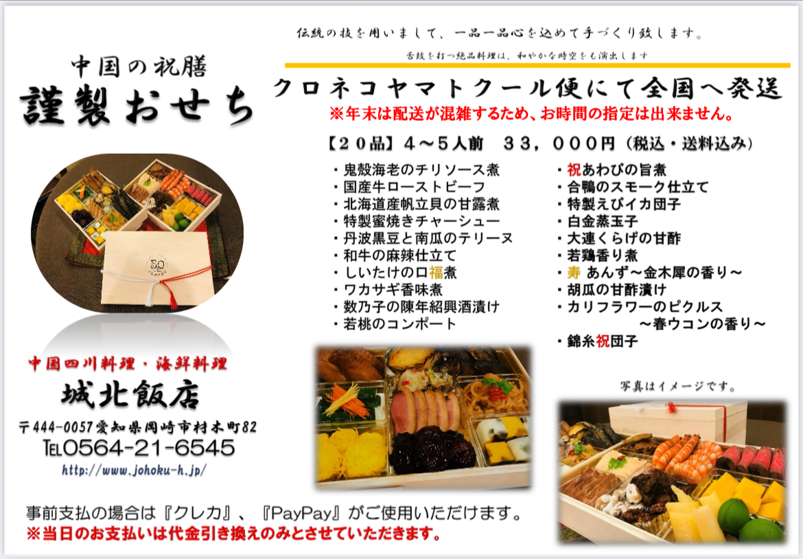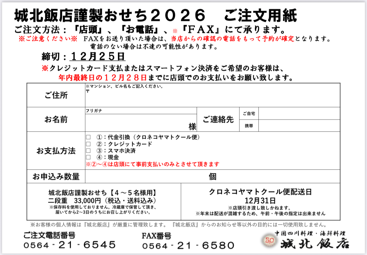 城北飯店謹製おせち2026ご注文承り開始です❗️